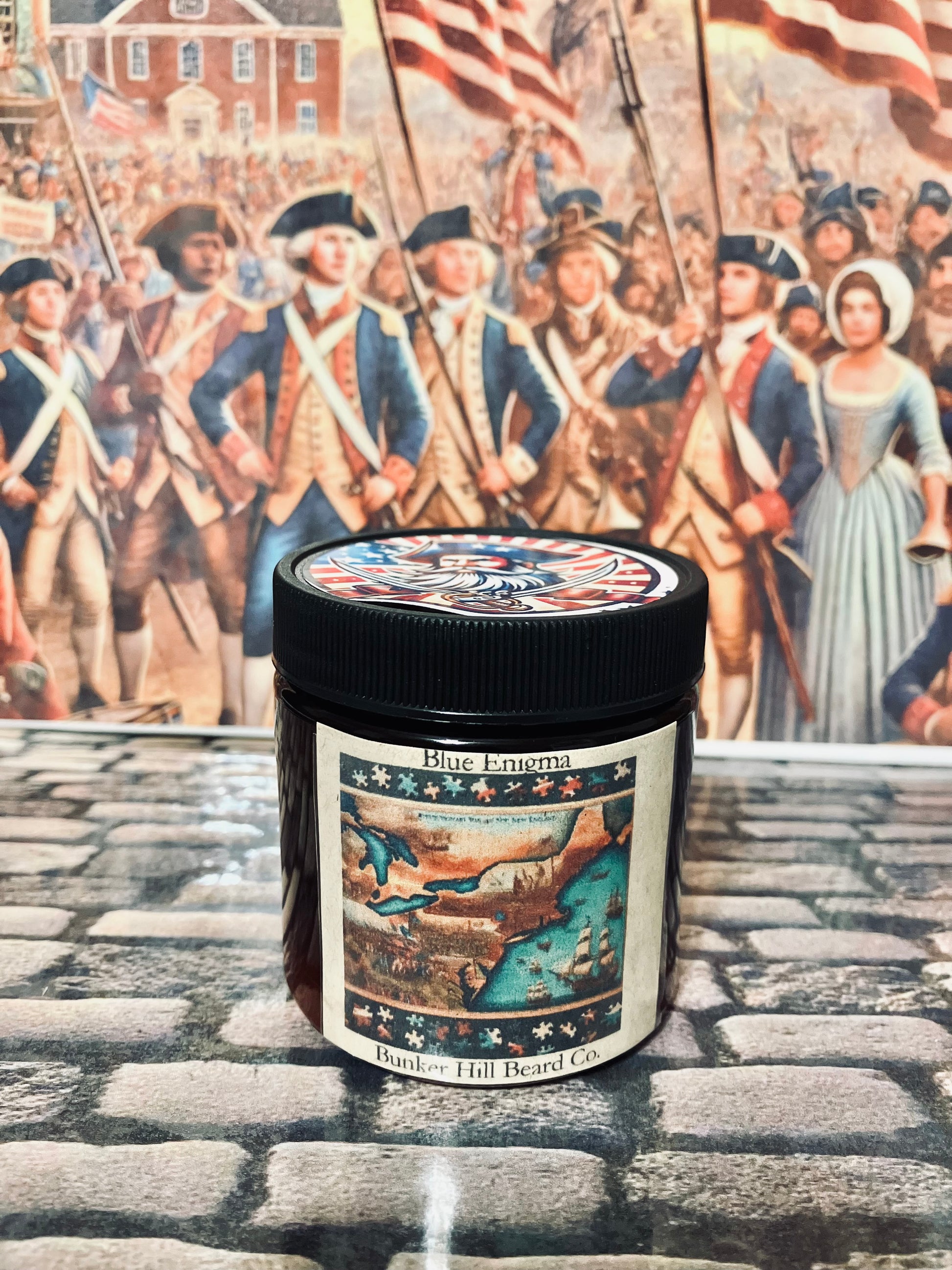 Blue Enigma is meant to bring awareness to autism. The artwork has puzzle pieces which are the signatures of autism awareness but there is also a tie back to revolutionary time as well. In that time period the first puzzles were made from maps, where they were glued on to wood and then cut into pieces which is also represented in the artwork as well. The fragrance is of a men’s cologne variety mixed with spices and fruits to bring a mix as complex as the autism spectrum. Treat yourself to the Fragrance of Light Blue cologne with the scents of limoncello and saffron spice, with this blend that will surely please everyone with Castor Oil, Abyssinian Oil, Hemp Seed oil, Meadow Foam Oil, Bees Wax, Tallow, Mango Butter and Shea Butter.