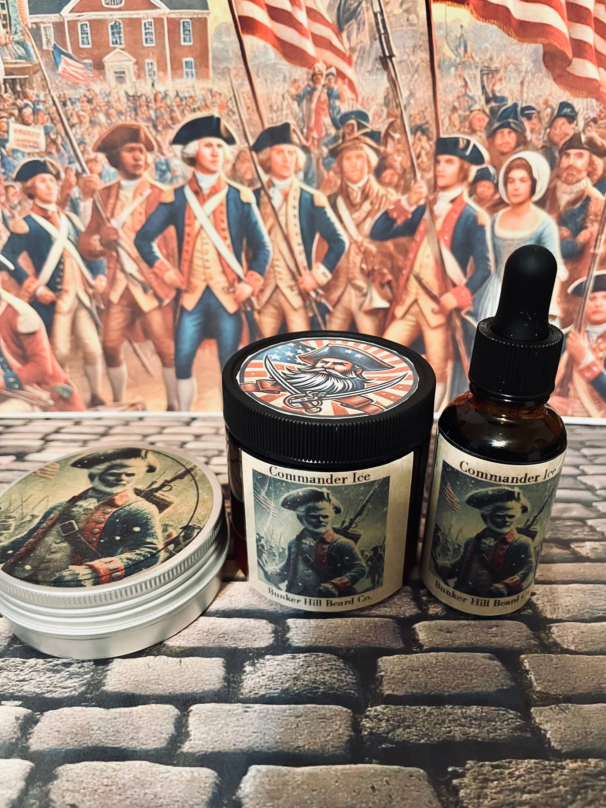 The winter has arrived on the battlefield and Commander Ice leads the charge with his frosty brigade. Let the Commander complete your beard care routine with the chill of the winter. Immerse yourself in handcrafted Beard Balm, Beard Butter, ad Beard Oil made with Castor oil, Abyssinian oil, Hemp Seed oil, Meadow Foam oil, Bees Wax, Shea butter, and Mango Butter.