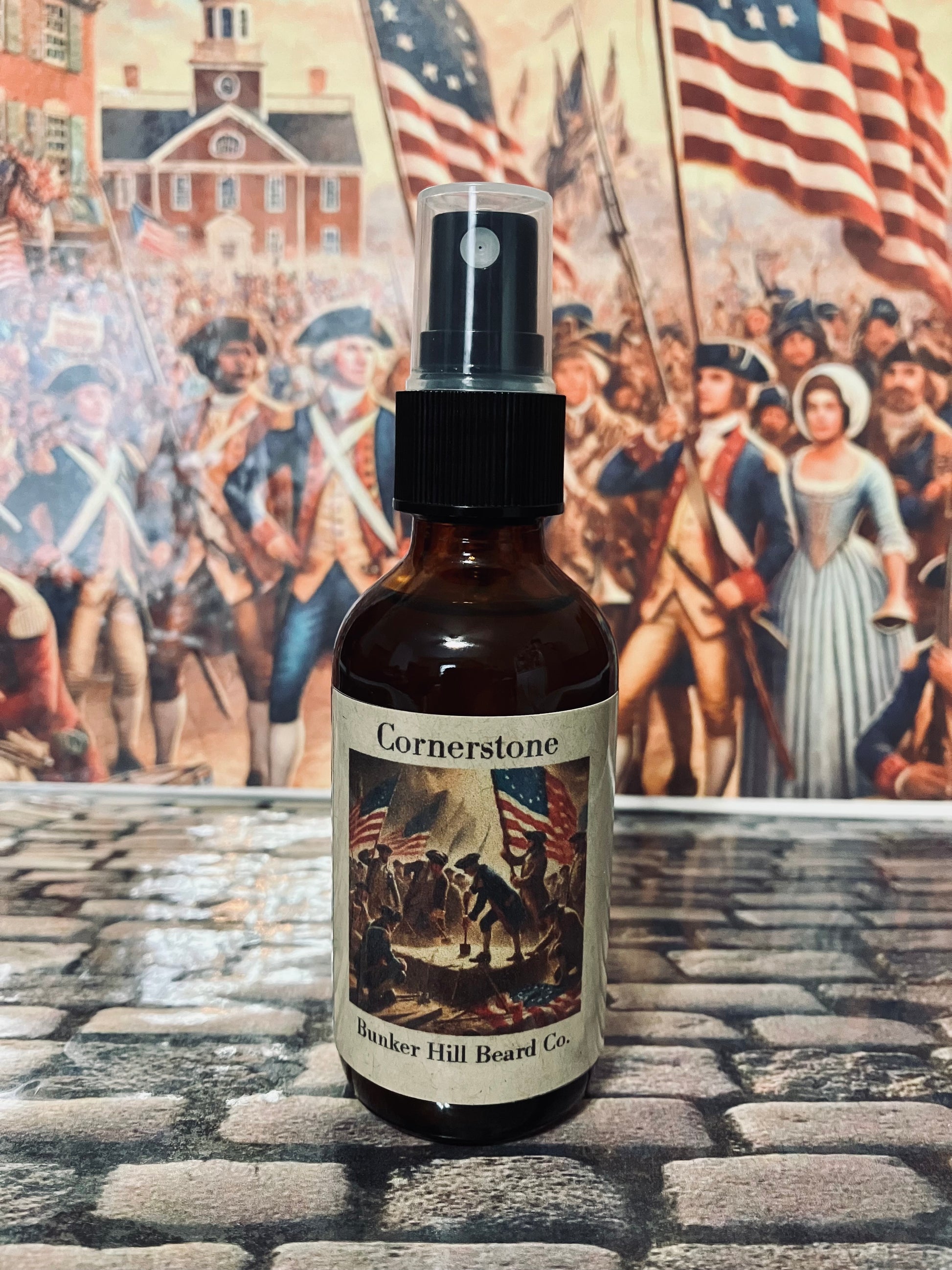 Let Cornerstone you to a spicy, earthy blend of scents surely to please the senses, Then immerse yourself in Handcrafted Cologne made with denatured alcohol, vegetable glycerin, distilled Water, and fragrance oils of Tobacco, Vanilla, Cinnamon, Clove, Bourbon, and Amber.